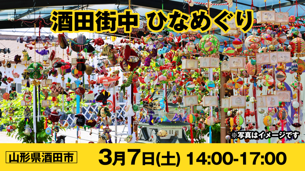 酒田街中ひなめぐり 酒田には北前船交易により運ばれてきた由緒ある雛人形が数多く残されています。日本三大つるし飾りである傘福とともに、東北の春の訪れを彩るイベント「酒田雛街道」を巡ります。 酒田街中ひなめぐり 開催日時2026年3月7日(土)14:00~... -